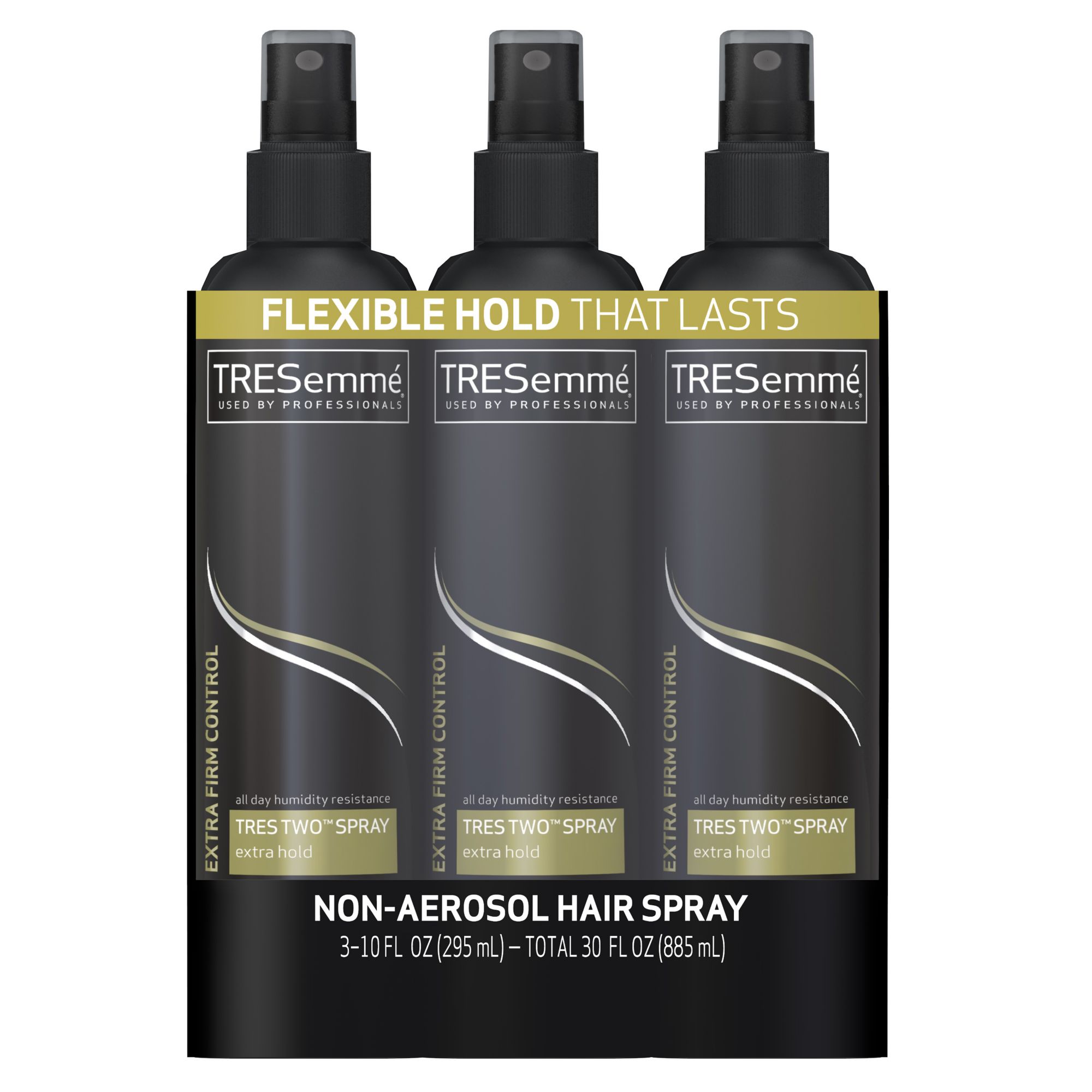 Tresemmé tres two extra hold hair spray gives you maximum hold with extra flyaway control, leaving no stiffness or stickiness. With supreme holding power, our extra hold non aerosol hair spray dries fast and contains locking polymers designed to resist. Hair care, hair spray, tresemme. Tresemmé tres two extra hold hair spray helps you manage your hair without making it stiff. You may not be able to control what the day throws at you, but with tresemmé tres two line of quality professional hair products, you can at least control your hair.